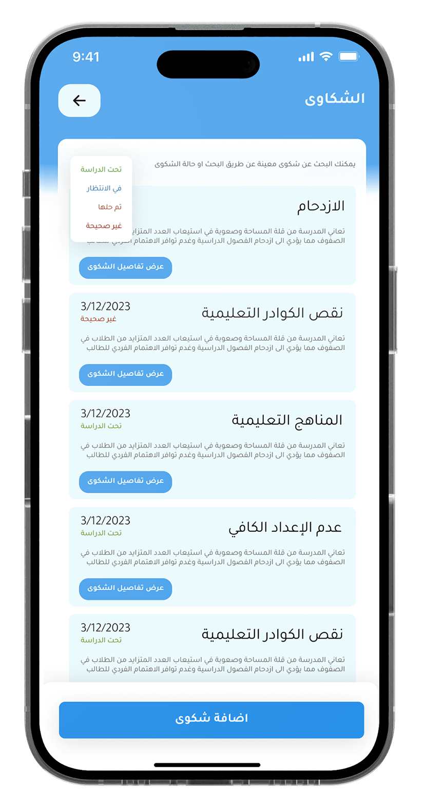 يتيح التطبيق التواصل الفعال وفي الوقت المناسب بين أولياء الأمور والمعلمين ومديري المدارس.